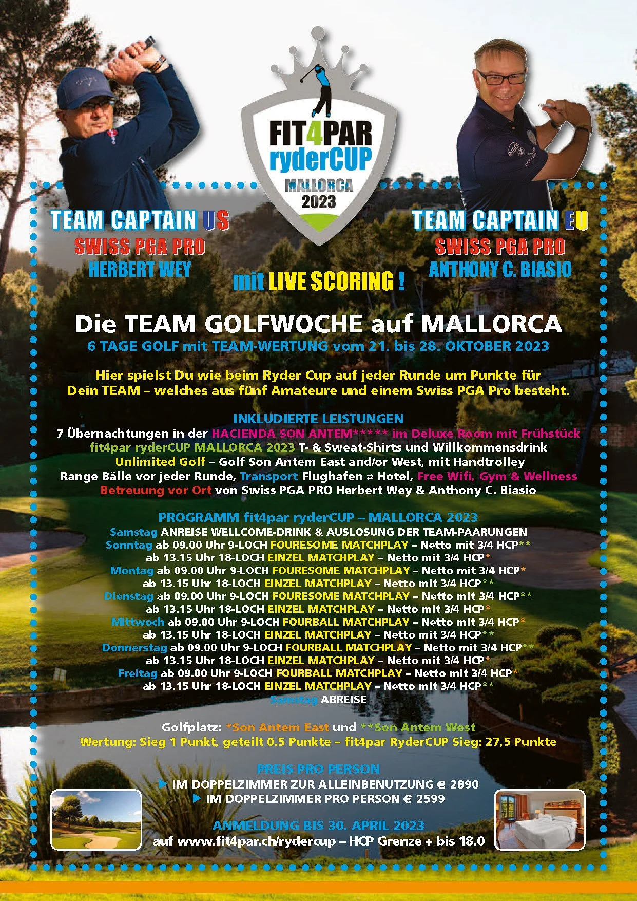 Spiele 6 Tage auf 2 verschiedenen Golfplätze im TEAM um den SIEG 🏆